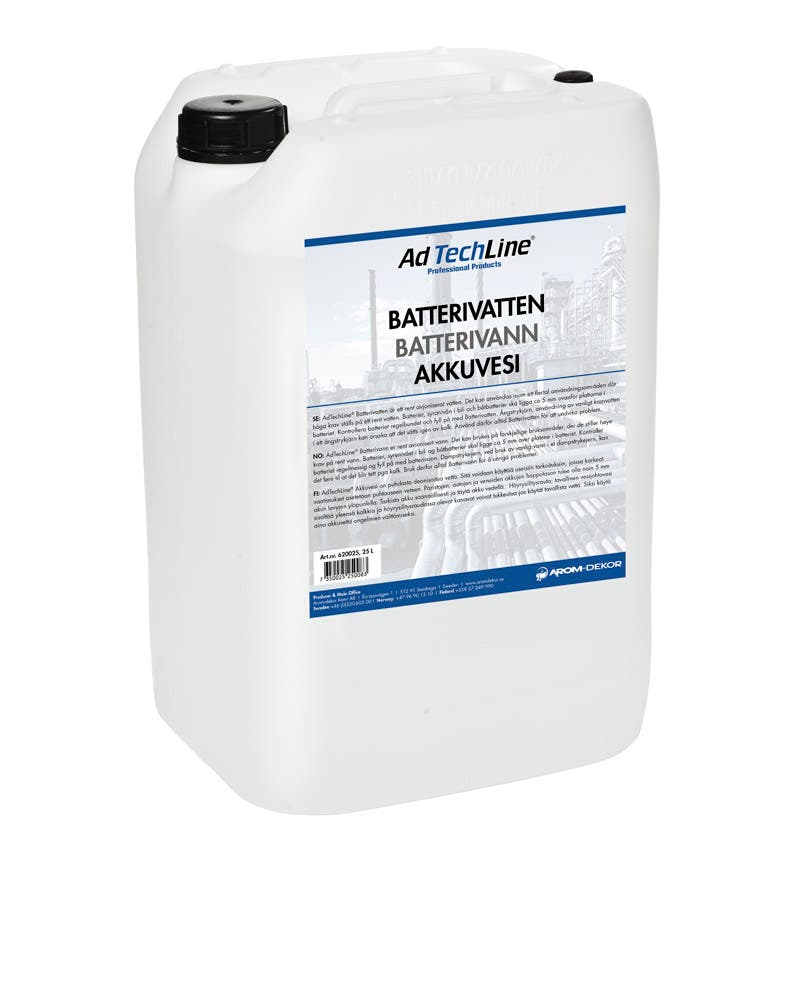 AdTechLine® Batterivann er et rent, avionisert vann. Batterivann kan brukes innen en rekke bruksområder der det stilles krav til rent vann.