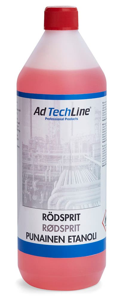 AdTechLine® Rødsprit brukes som brensel i spritapparater og stormkjøkken. Brenner uten å sote, kan også brukes til rengjøring av frontruter og speil.