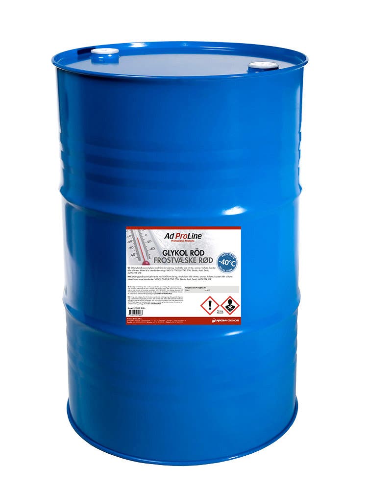 AdProLine® Frostvæske Rød Ferdigblandet basert på monoetylenglykol uten 2-EHA, amin, borat, fosfat, nitritt eller silikat. AdProLine® Frostvæske Rød Ferdigblandet er blandbar med de fleste andre kjølevæskeglykoler basert på monoetylenglykol. Den ekstreme inhibitorpakken gir overlegen korrosjonsbeskyttelse i forhold til eldre typer kjølevæskeglykol. Beskytter mot alle metaller inkludert aluminium. AdProLine® Frostvæske Rød Ferdigblandet gir korrosjonsbeskyttelse for opptil 250 000 km eller 6 år. Sjekk frysepunktet till kjølevæsken hvert år og fylls påhvis nødvendig. Etylenglykol er giftig og må ikke intas. Det er biologisk nedbrytbart og utslipp av små mengder forårsaker ikke forstyrrelser i renseanleggenened-brytningstrinn