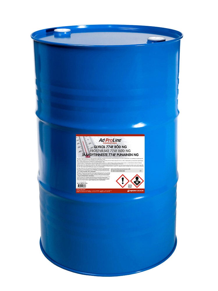 AdProLine® Frostvæske 774F Rød NG består av monoetylenglykol og en nyutviklet inhibitorpakke basert på OAT-teknologien som gir utmerket korrosjonsbeskyttelse for dem de fleste metaller inkludert aluminium. Inneholder ikke 2-EHA, amin, borat, nitritt el silikat. Sjekk frysepunktet på frostvæsken hver høst og fyll på om nødvendig. Etylenglykol er giftig og må ikke fortæres. Det er biologisk nedbrytbart og utslipp av mindre mengder gir ikke forstyrrelser i renseanleggenes dekomponeringstrinn.