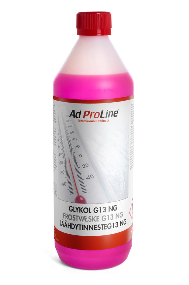 AdProLine® Frostvæske G13 NG er en moderne frostvæske av høy kvalitet og lang levetid. Utviklet og formulert for å møte de stadig høyere kravene som stilles av de ledende kjøretøy- og motorprodusenter. Spesielt designet for bruk i moderne forbrenningsmotorer, hybridbiler og for indirekte kjølesystemer i elbiler. Beskytter mot korrosjon, frysing, koking og motvirker forekomst av kavitasjon. AdProLine® Frostvæske G13 NG er kompatibel med de fleste andre kjølevæsker basert på etylenglykol.