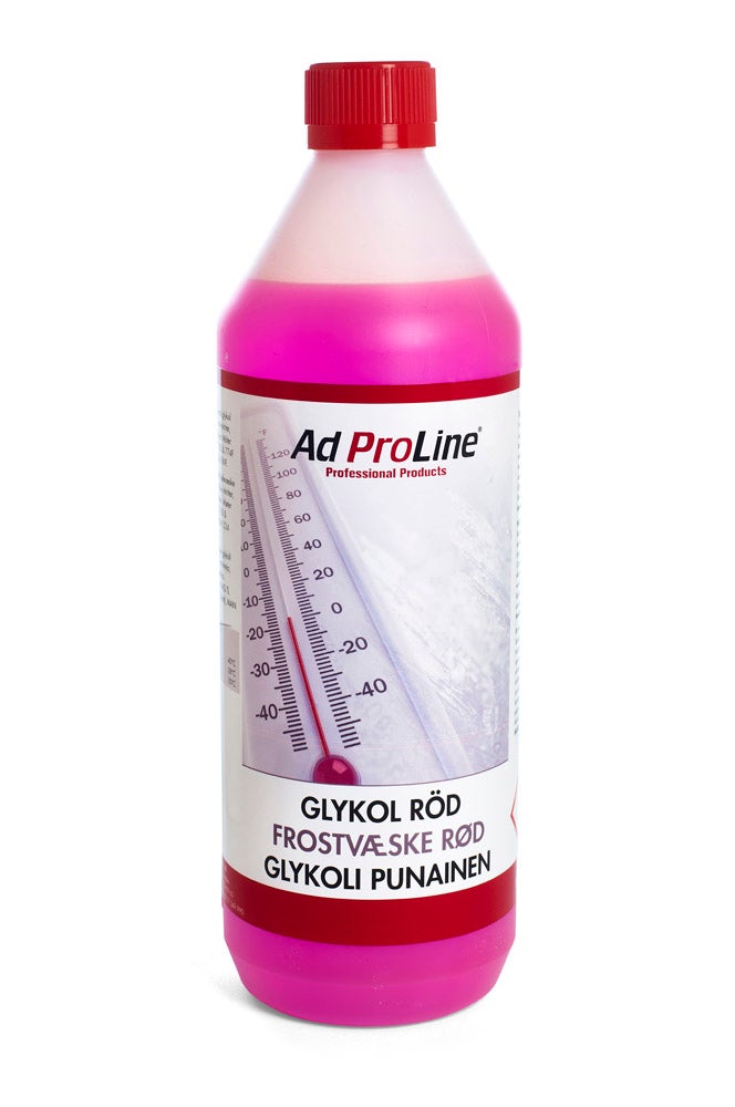 AdProLine® Frostvæske Rød er basert på monoetylenglykol uten nitritter, aminer, fosfater, silikater og boarater. AdProLine® Frostvæske Rød kan blandes med de fleste andre kjøleglykoler som er basert på etylenglykol. De usedvanlig kraftige inhibitorene gir overlegen rust- og korrosjonsbeskyttelse sammenlignet med eldre typer glykol. Beskytter alle typer metaller, inkludert aluminium. Produktet gir korrosjonsbeskyttelse i opptil 240 000 km eller 5 år. Kontroller kjølevæskens frostbeskyttelse hver høst, og etterfyll ved behov. Frostvæske er giftig og må ikke svelges. Den er biologisk nedbrytbar, og utslipp av mindre mengder forårsaker ikke forstyrrelser i renseanleggets nedbrytingsprosess.
