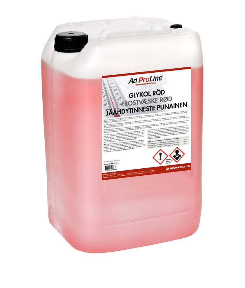 AdProLine® Frostvæske Rød er basert på monoetylenglykol uten nitritter, aminer, fosfater, silikater og boarater. AdProLine® Frostvæske Rød kan blandes med de fleste andre kjøleglykoler som er basert på etylenglykol. De usedvanlig kraftige inhibitorene gir overlegen rust- og korrosjonsbeskyttelse sammenlignet med eldre typer glykol. Beskytter alle typer metaller, inkludert aluminium. Produktet gir korrosjonsbeskyttelse i opptil 240 000 km eller 5 år. Kontroller kjølevæskens frostbeskyttelse hver høst, og etterfyll ved behov. Frostvæske er giftig og må ikke svelges. Den er biologisk nedbrytbar, og utslipp av mindre mengder forårsaker ikke forstyrrelser i renseanleggets nedbrytingsprosess.