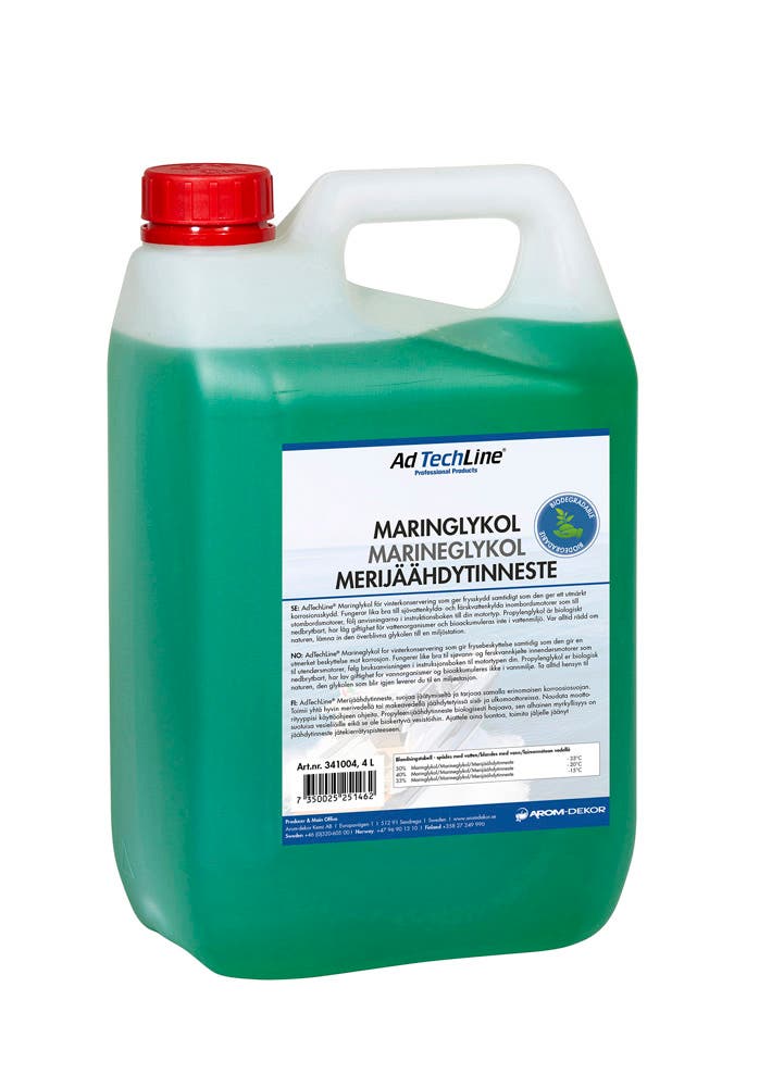 AdTechLine® Marineglykol for vinterkonservering gir frostbeskyttelse, samtidig som den gir svært god beskyttelse mot korrosjon. Den fungerer like godt til salt- og ferskvannskjølte innenbordsmotorer som til utenbordsmotorer, følg anvisningene i instruksjonsboken for din motortype.