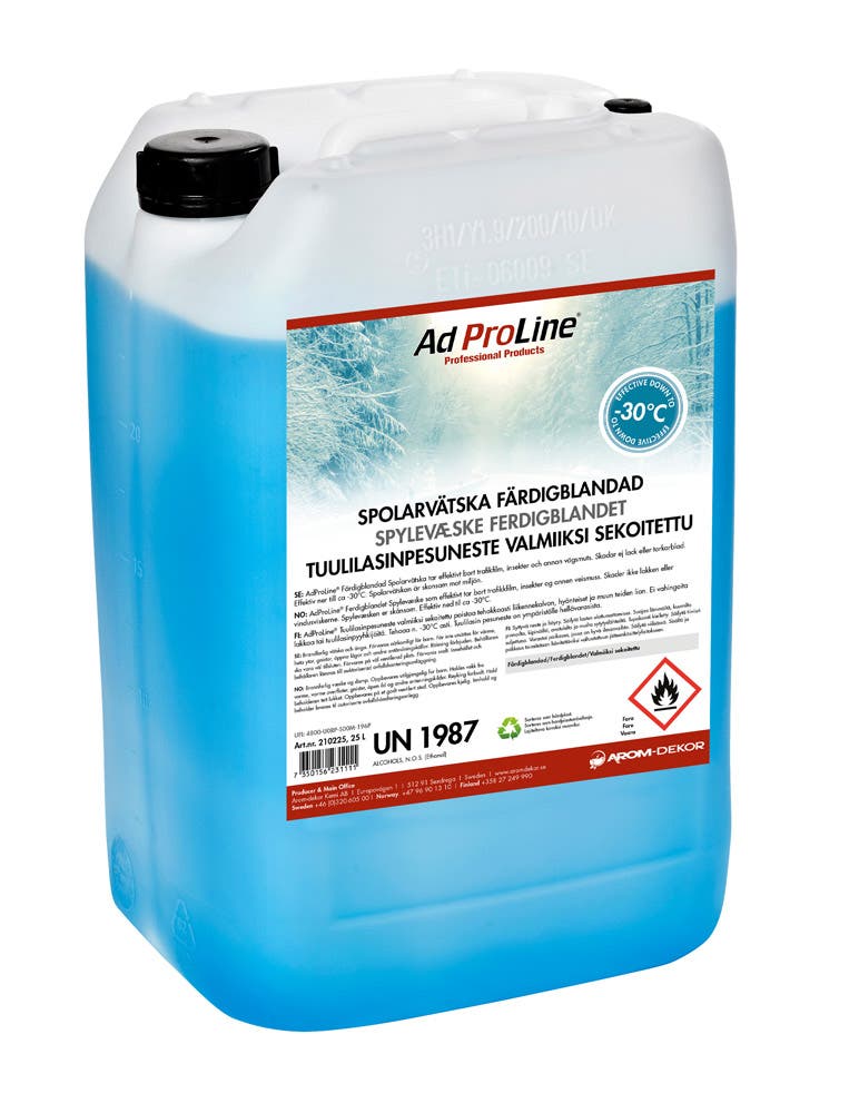 AdProLine®-spylervæsker er basert på nøye utvalgte råvarer som sikrer kvalitet og maksimal rengjøring. Etanolen er denaturert i samsvar med gjeldende europeiske standarder. Det sikrer kvaliteten med tanke på frostbeskyttelse, lukt og rengjøringsevne. Vår ferdigblandede spylervæske inneholder en effektiv tensidpakke for maksimal rengjøring. Væsken er brannfarlig i ferdigblandet løsning. Produktet er biologisk nedbrytbart.