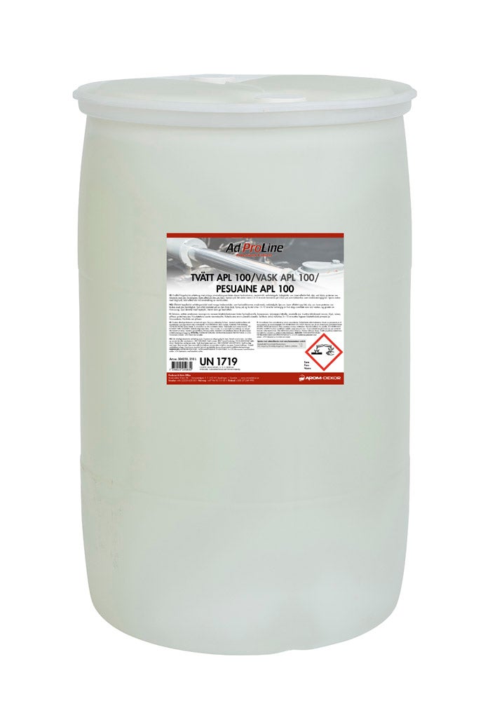 AdProLine® Vask APL 100 er et kraftig, høyalkalisk avfettingsmiddel med mange bruksområder, som hydraulikkarmer, maskinvask, verkstedsgulv, fjøs osv. Løser effektivt opp fett, olje, sot, kvae, proteiner osv. Svært kraftig, alkalisk avfettingsmiddel med høy pH-verdi. Fungerer svært godt også på våte flater. Inneholder biologisk nedbrytbare tensider.