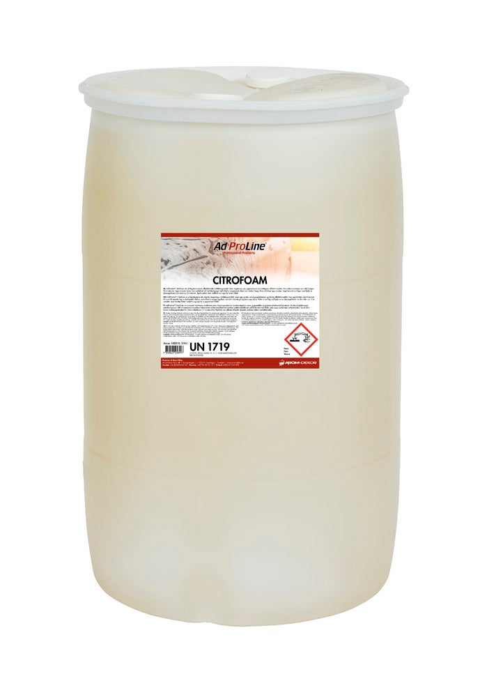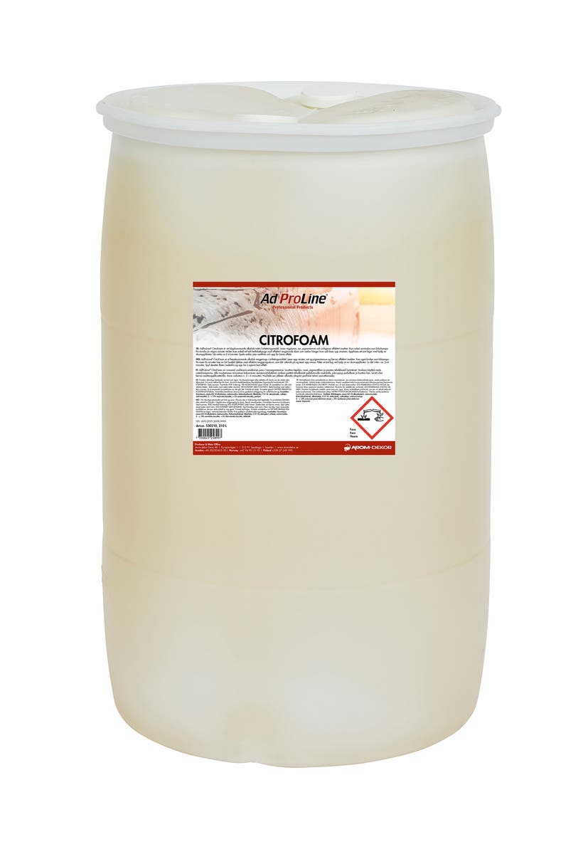AdProLine® Citrofoam er et høytskummende alkalisk rengjørings-/avfettingsmiddel som egner seg til vask av både kjøretøy, fasader og andre flater. Løser effektivt opp veistøv, sot, pigmentsmuss og fjerner enkelt insekter. Kan også brukes som bilsjampo. Ved hjelp av en skumapplikator dekker du enkelt en hel lastebilekvipasje på noen minutter, og det rengjørende skummet blir sittende på og løser opp smusset.