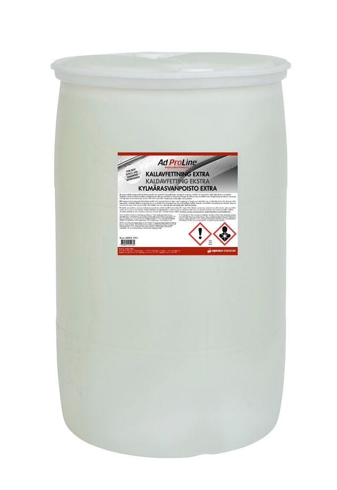 AdProLine® Kaldavfetting Ekstra er et lavaromatisk, emulgerende kaldavfettingsmiddel med svært god oppløsningsevne. Produktet inneholder ekstra tilsetningsstoffer som gir økt effekt og gjør produktet mer hurtigvirkende enn andre lavaromatiske kaldavfettingsmidler. Egnet for rengjøring av kjøretøy og maskindeler som er tilsmusset av for eksempel asfalt, tjære, fett og tilsvarende. AdProLine® Kaldavfetting Ekstra inneholder en effektiv emulgatorpakke som gir produktet en svært god fukteevne på ulike typer flater og dermed øker oppløsningsevnen betraktelig.