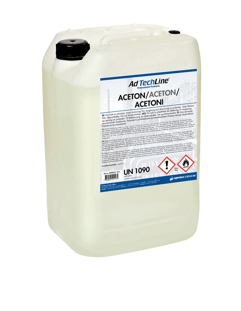 AdTechLine® Aceton rengjør og fortynner polyester samt løser opp flekker fra oljeprodukter, lim og klistremerker.