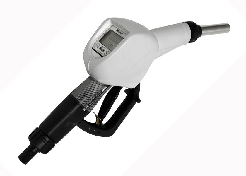 Pistolhåndtak med automatisk stenging som slår av når tanken er full. Pistolhåndtaket har også en innebygd strømningsmåler som er mulig å kalibrere.
